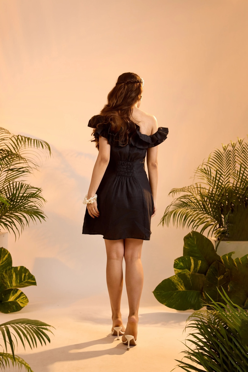 The Aeris dress is your breezy go-to for playful sophistication. Designed with a flattering off-shoulder neckline and layered ruffle detail, it brings a soft, feminine energy to a bold silhouette. The mini length and smocked back offer comfort and shape, while the linen base keeps things light and breathable. Perfect for everything from beach days to evening outings - just add your favourite accessories and you’re set.