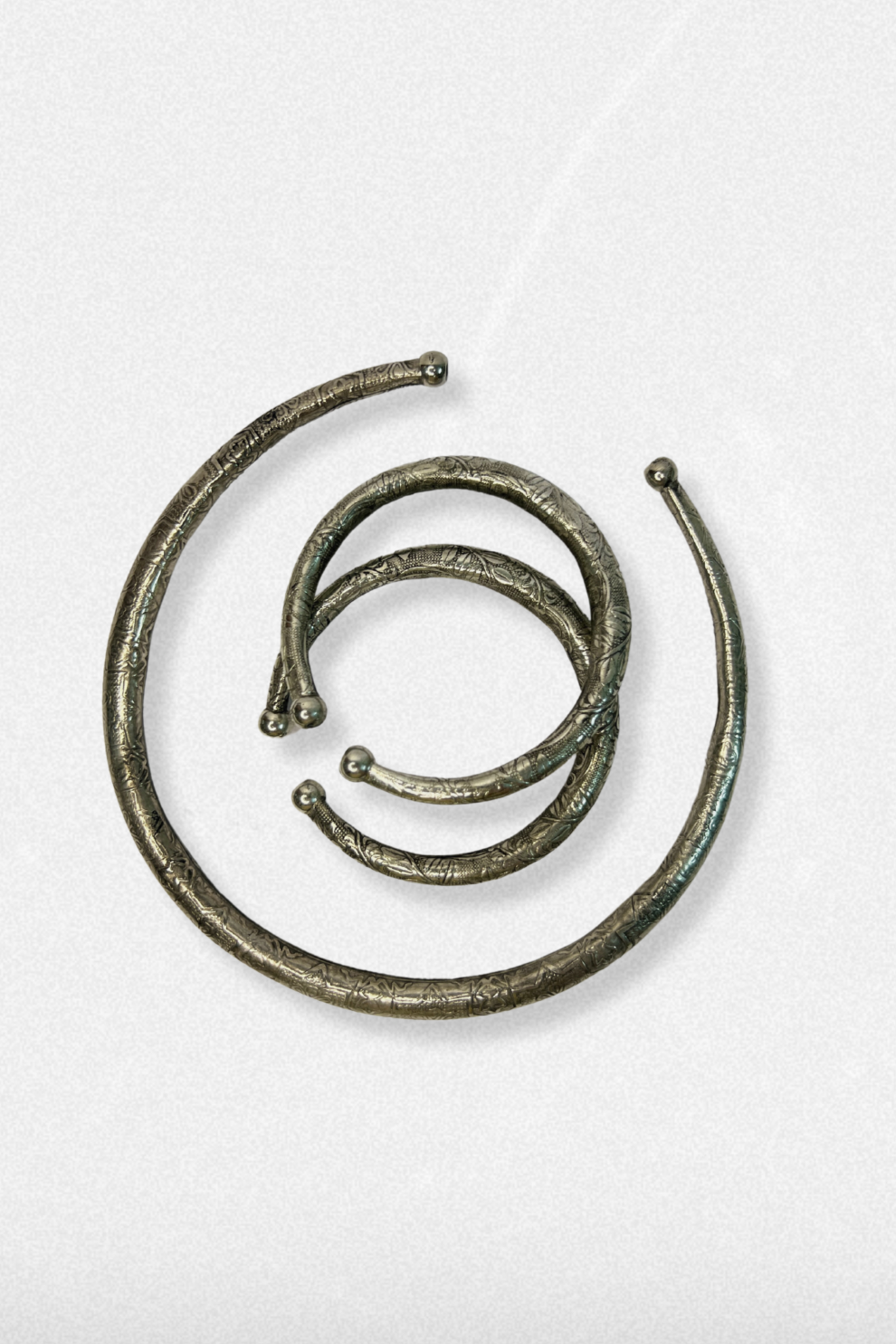 A set of 3, made with intricate engravings and unique polish. Pair these together for a complete look. (Choker, Kada, Anklets) As mentioned above