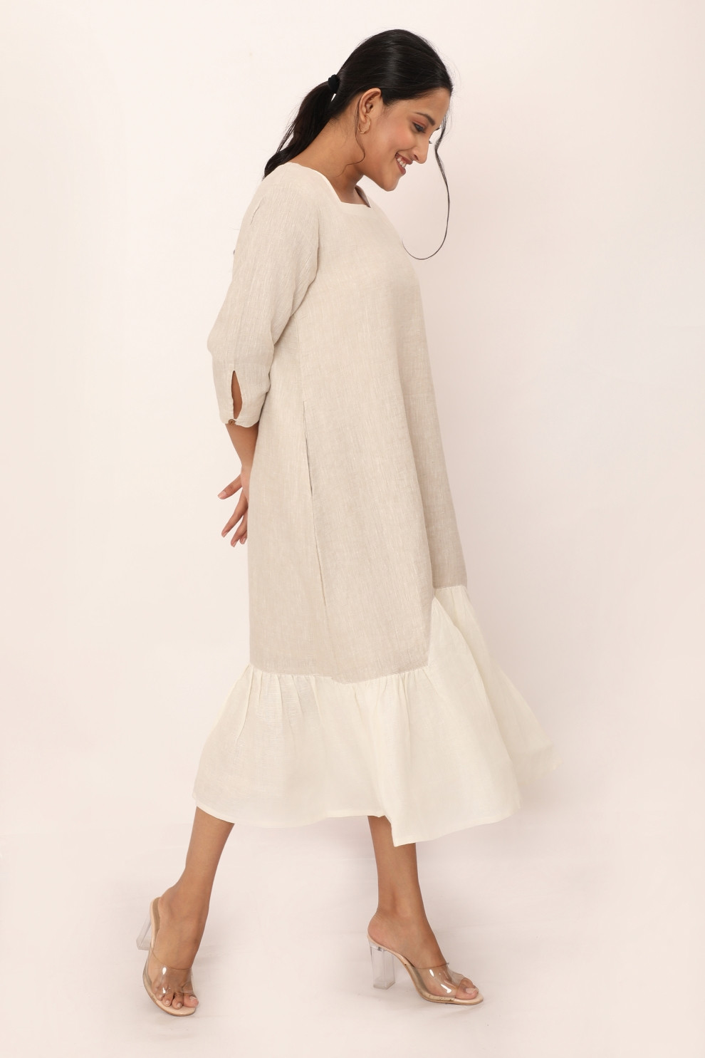 The Claire dress combines a sleek silhouette with playful detailing, making it a versatile wardrobe staple. Its structured neckline and flowy hem add a touch of sophistication, while the relaxed fit ensures daylong comfort. Designed for those who appreciate minimalism with a twist, Claire transitions effortlessly from casual outings to elegant evenings. This dress is a timeless piece that invites ease and grace into your everyday wardrobe.