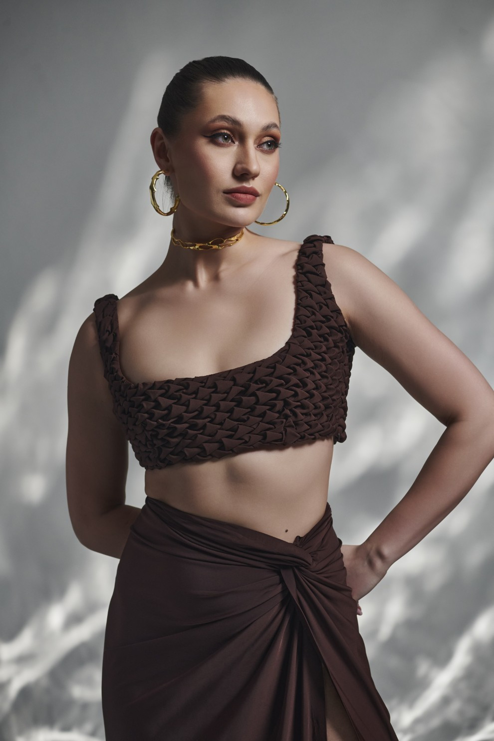 Crafted from stretchable lycra, our EKKO Draped Skirt features a versatile knot detail at the waist, allowing for styling options at the front or side. Its silhouette beautifully accentuates feminine curves for a flattering look. Pair it effortlessly with our EKKO Smock Top for a chic beach vacation ensemble, or dress it up with elegant accessories for a formal evening affair.