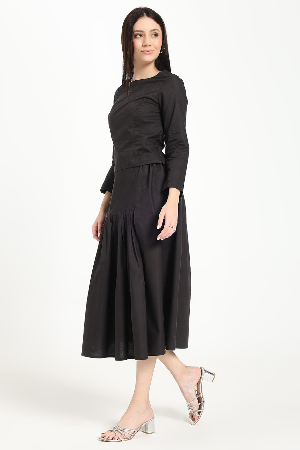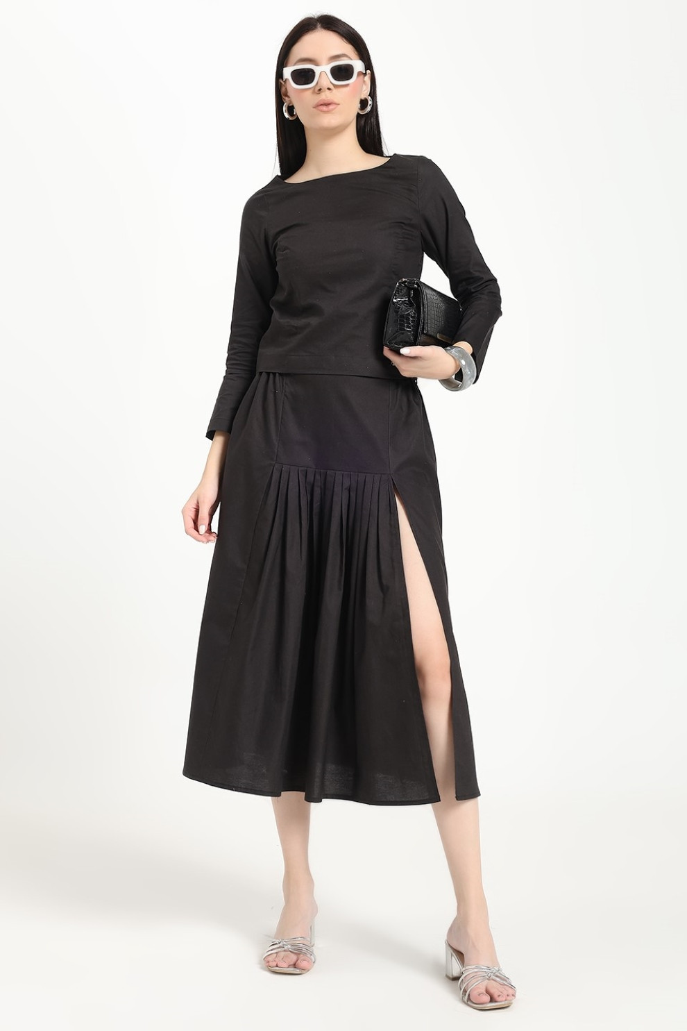 Polished yet effortlessly wearable, this grey pleated skirt brings a touch of formality to everyday elegance. Tailored from premium suiting fabric, it holds its shape beautifully while offering fluid movement with every step. The mid-rise, semi-formal silhouette features soft pleats and a subtle slit