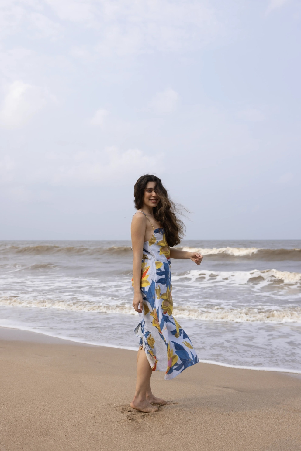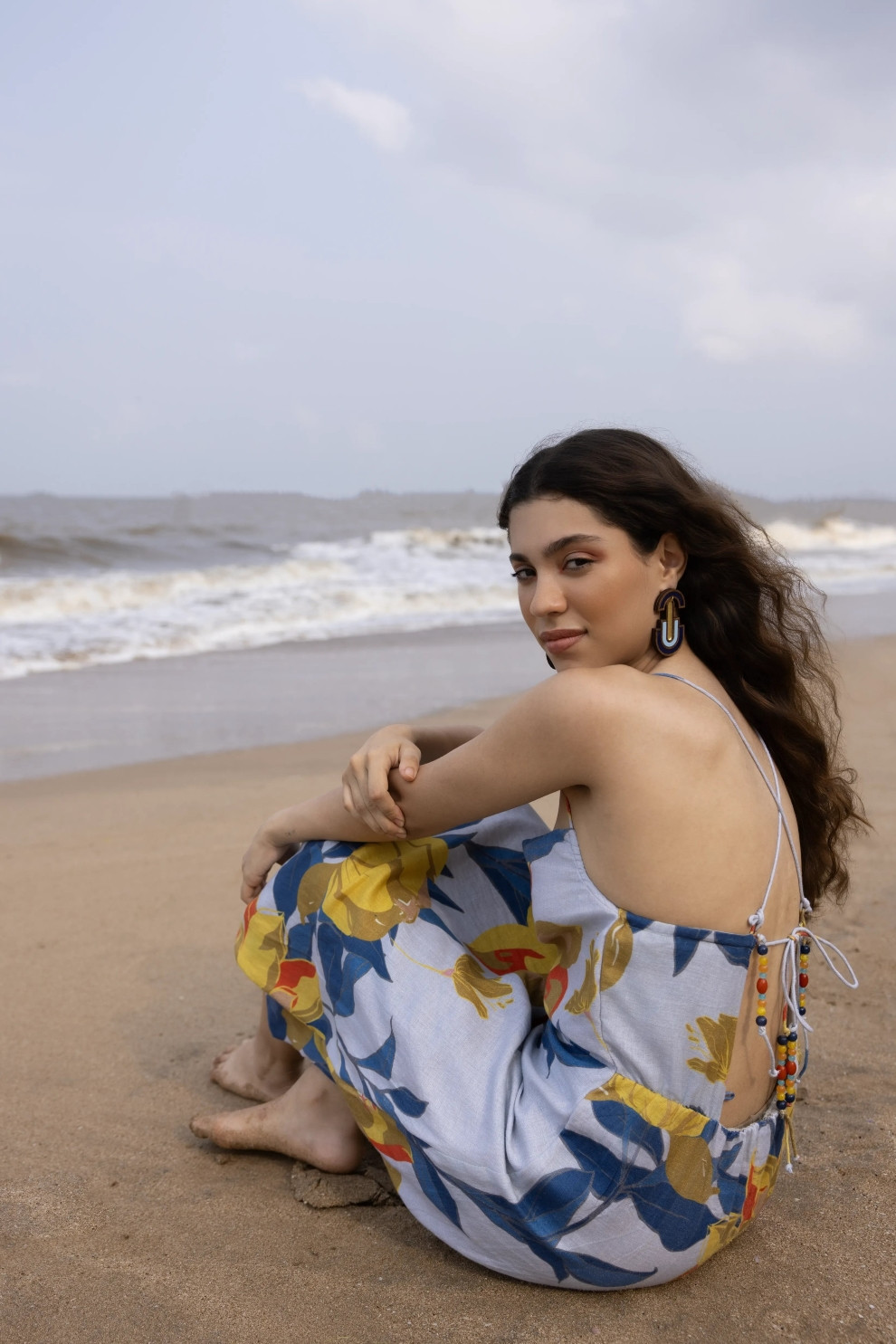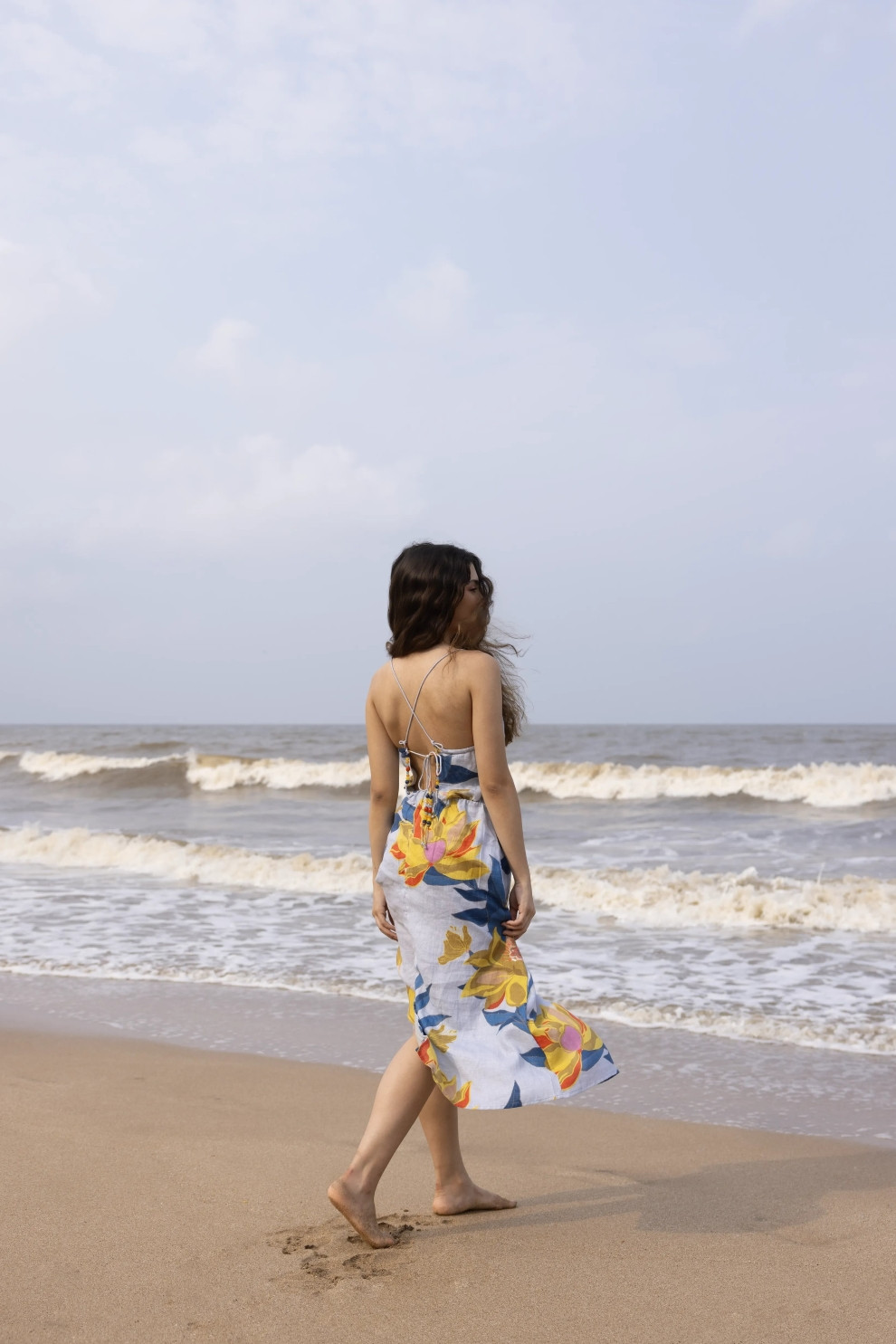 A breezy midi crafted for warm days and coastal escapes. The Esme Dress features a structured square neckline and slender shoulder straps, falling into a flattering A-line silhouette. The standout detail lies at the back — a delicate lace-up design adorned with hand-threaded bead accents that add a playful, artisanal finish. Wear it to brunches, beach strolls, or golden hour soirées — this piece moves beautifully with you.
