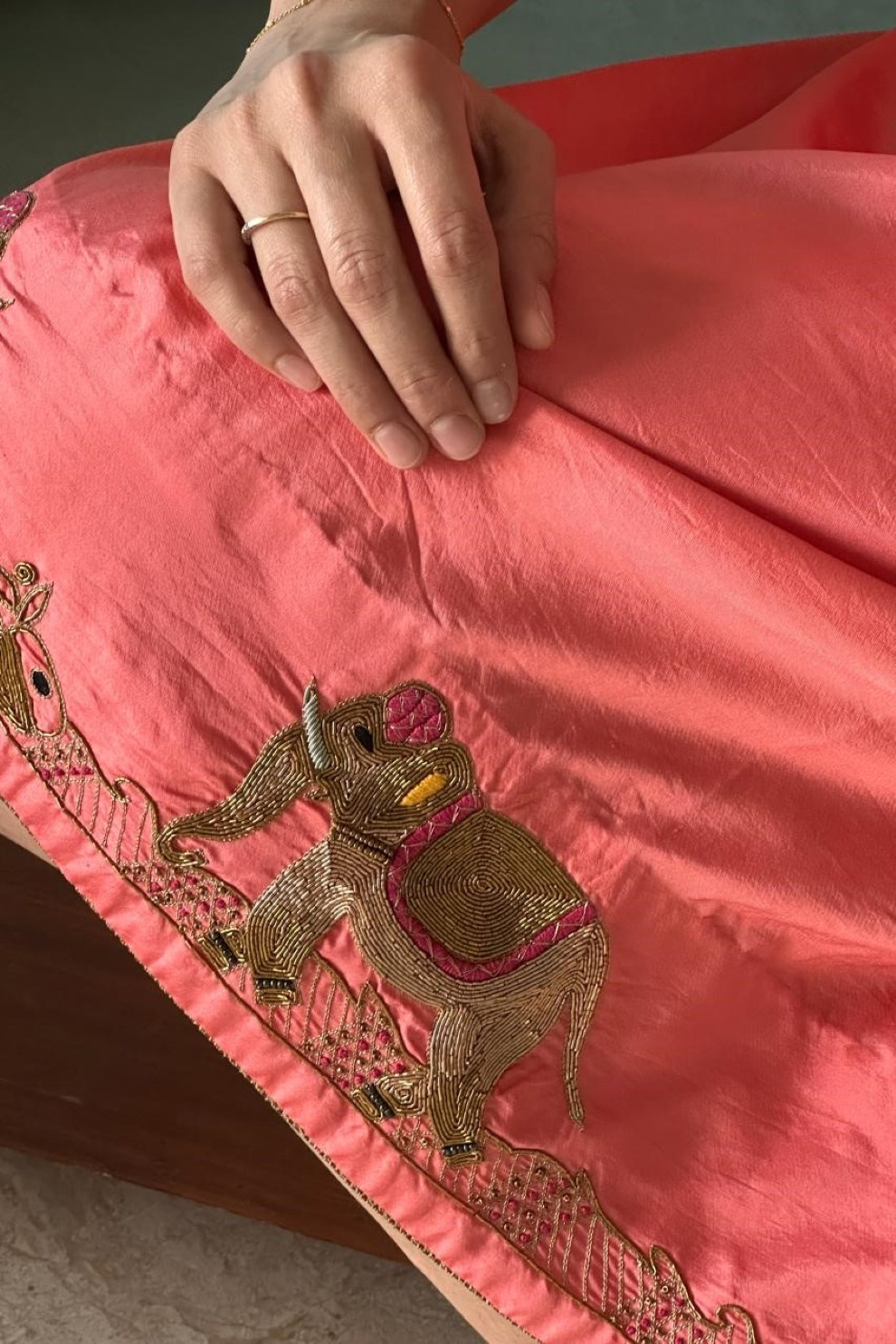 Elephant hand woven zardozi motifs adds a touch of tradition & richness