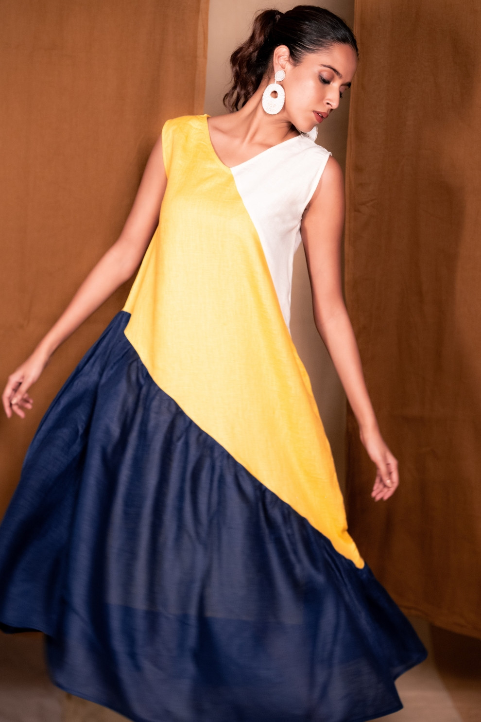 The Juliette dress is a contemporary take on classic colour-blocking, with a unique, asymmetrical design. Featuring a sleeveless, A-line silhouette that flows effortlessly, it offers comfort with style. The diagonal panelling adds a bold touch, while the soft, breathable fabric ensures ease of movement. Perfect for both casual days and special evenings, this dress is a statement piece for those who value versatility and individuality.