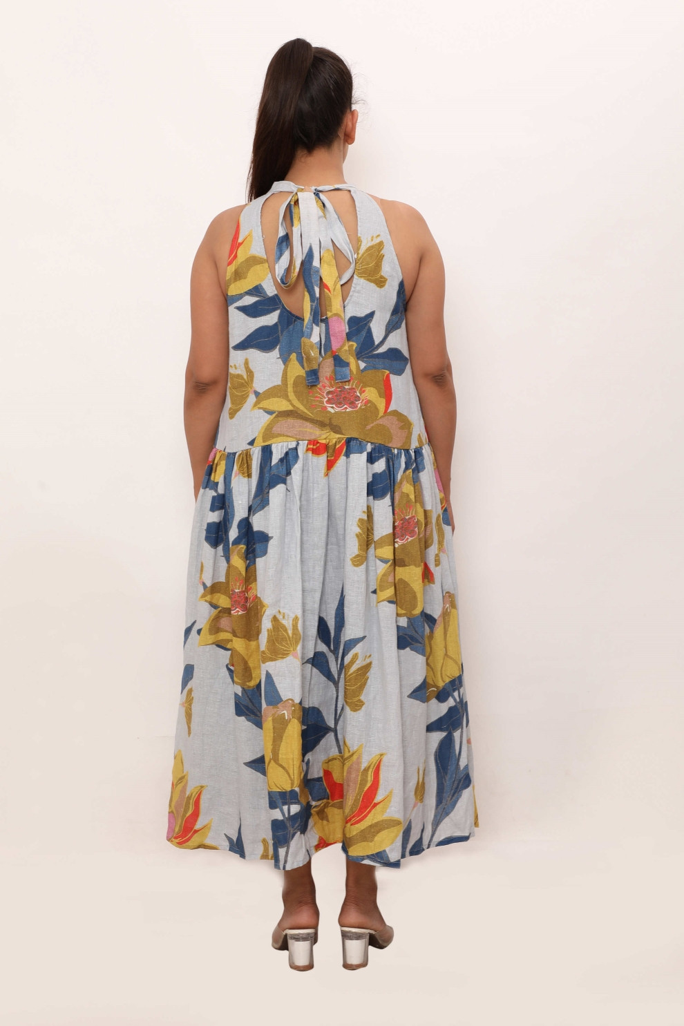 The Minerva Dress is a captivating blend of elegance and comfort. This long, loose-fit dress features a high neckline with a charming bow tie detail at the back, adding a touch of sophistication. Adorned with a vibrant print, the dress flows gracefully, making it perfect for both casual outings and special occasions. The sleeveless design and relaxed fit ensure you stay comfortable all day long, while the high-low hem adds a modern twist.