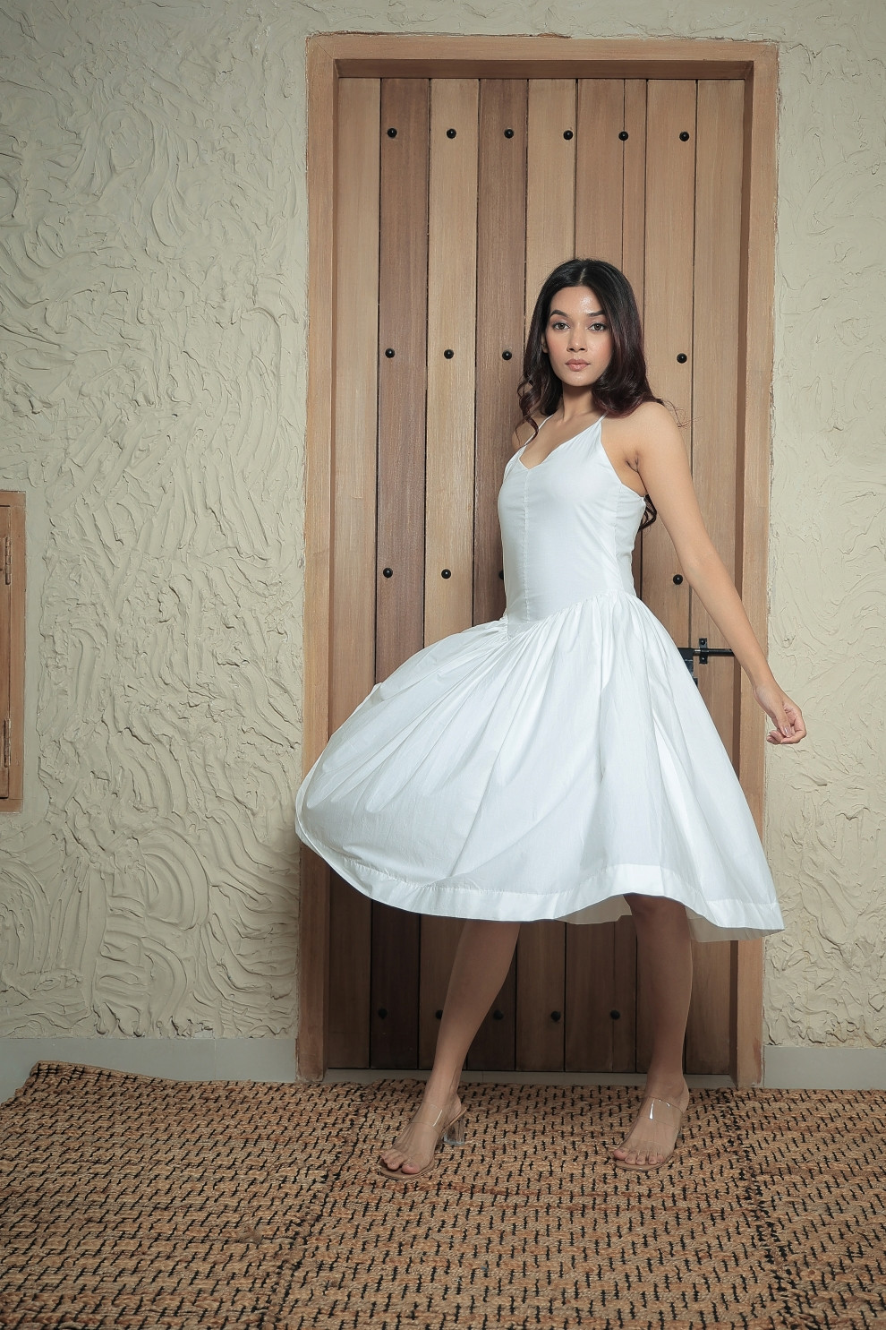 A piece with the potential to be your new wardrobe favourite! This lycra flowy dress is all about comfort and style. Designed with a slight peek-a-boo back cut-out, it hugs in all the right places and offers amazing versatility. Whether you are planning to adorn this piece on a beach, a day party, or a night out, this white dress ensures you look and feel your best.