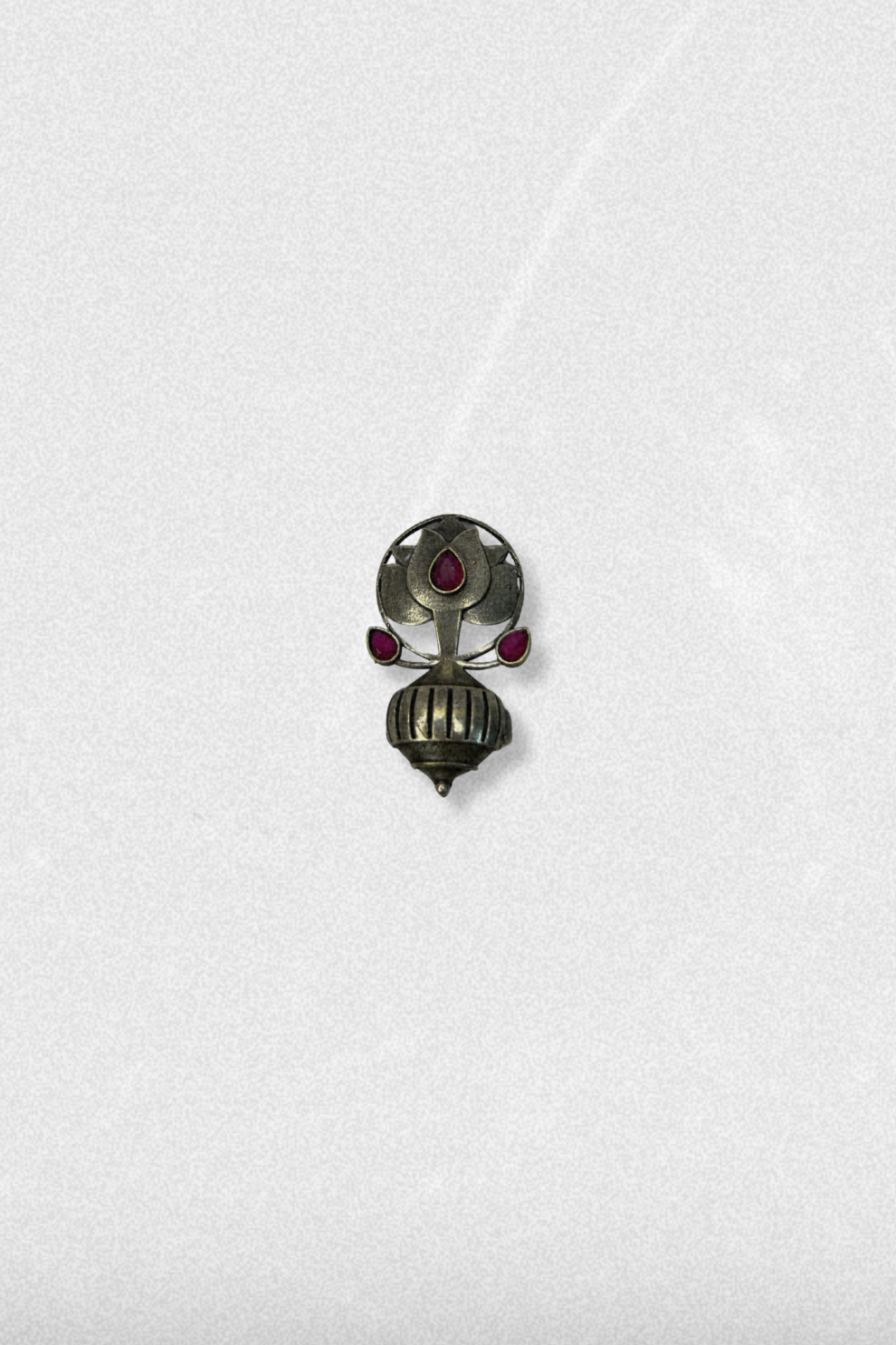Inspired by temple motifs and sacred lotuses, this oxidized ring is a tribute to divine femininity. Accented with ruby stones for a regal touch. Style tip: Pair with deep maroon or jewel-toned kurtas and oxidized jhumkas to complete the goddess vibe. Size : Ring Top 4.5 cm adjustable size Weight : 12 gram Material : Brass