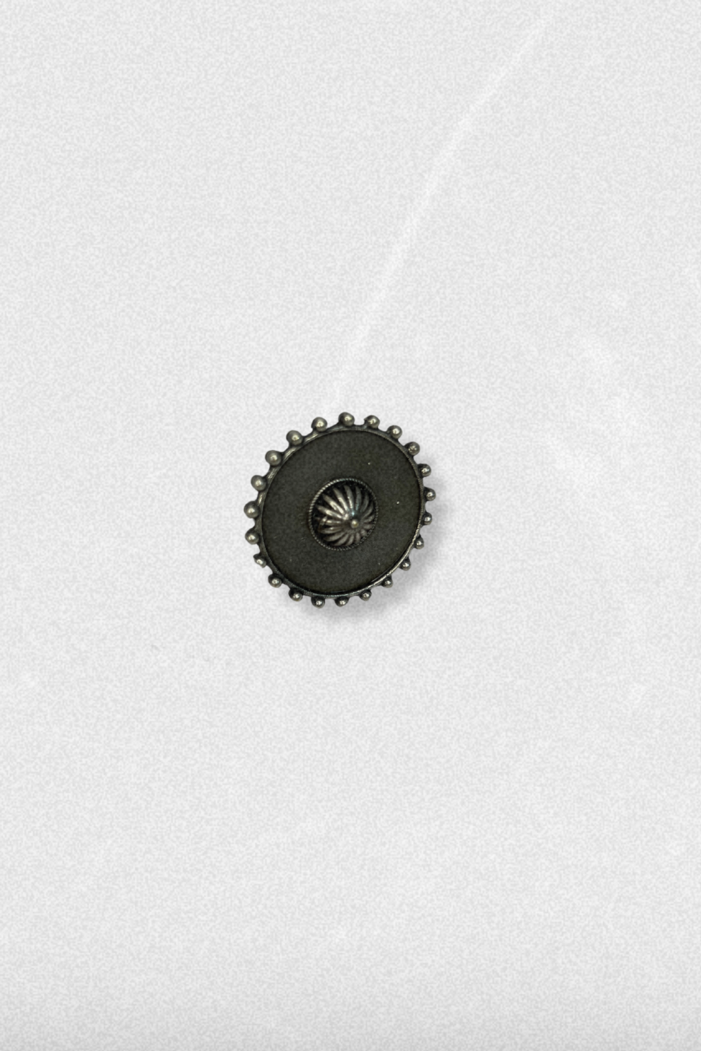 This regal oval ring is inspired by the ceremonial tilak thali—embellished with a central dome and bordered by oxidised beads. It’s a nod to ancestral rituals and royal grandeur, rooted deeply in Rajasthani heritage. Style tip: Let this ring be the star by styling it with soft silk or organza and minimal hand accessories. Think festive nights and family gatherings. Size : Adjustable with Top 3 cm Weight : 13 gram Material : Brass