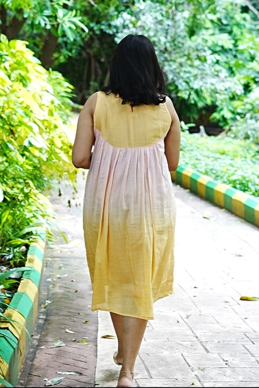 An Ombre of blush pink to sun-washed yellow in cotton silk fabric