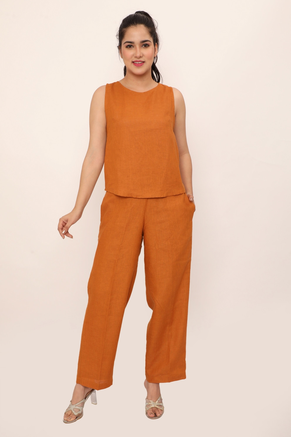 The Maisie Set - a chic and versatile set, perfect for those who appreciate effortless style and comfort. The sleeveless top features a unique crossover back design that adds a modern twist to a classic silhouette. Paired with matching wide-leg pants, this ensemble offers both ease of movement and a flattering fit, thanks to the elastic waistband at the back. Ideal for casual outings or relaxed weekends, this set embodies a blend of style and comfort, making it a staple in any wardrobe.