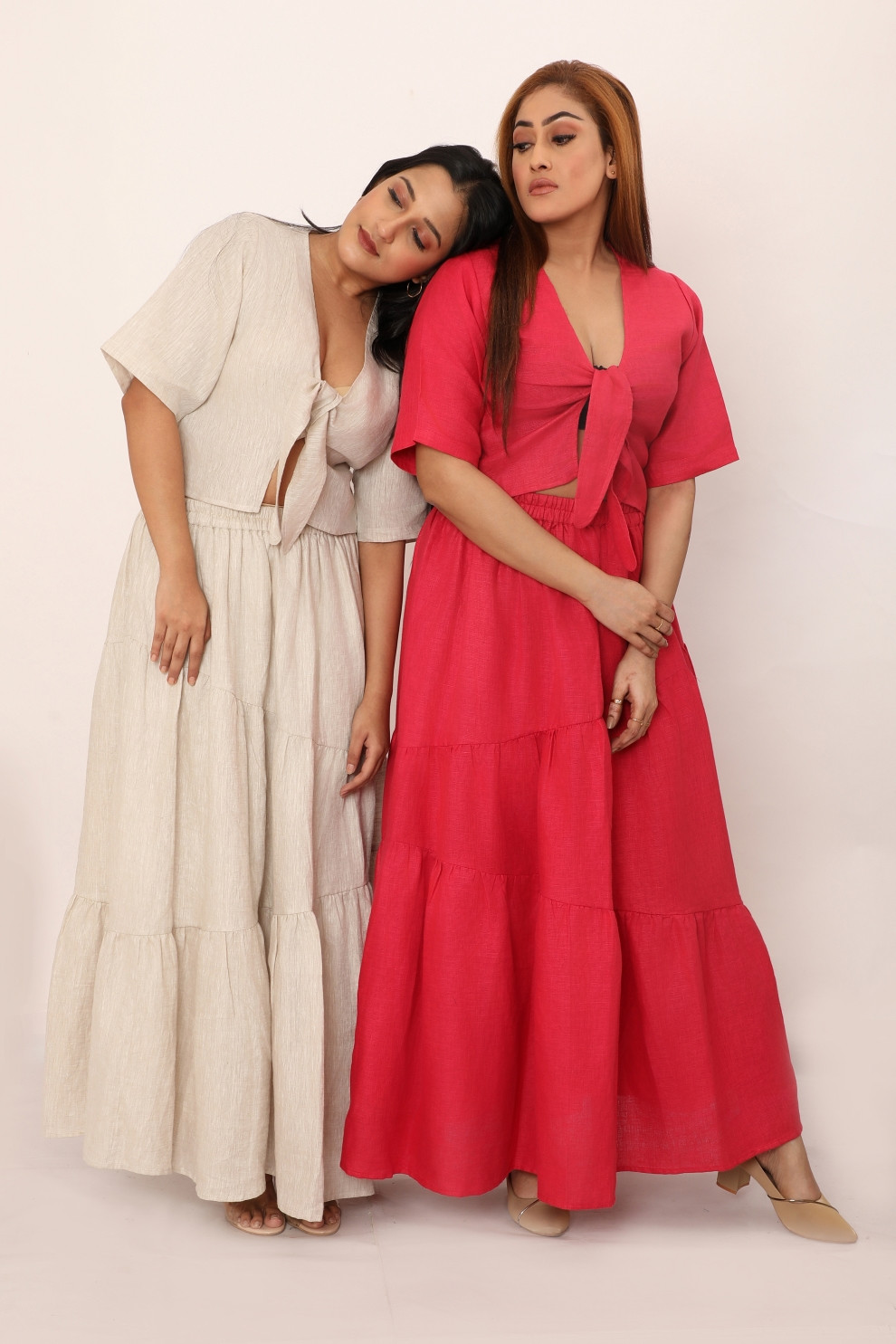 Embrace the effortless charm of the Shania set, designed to move with you. With a flattering tie-front top and a flowy, tiered skirt, this ensemble brings together relaxed elegance and refined comfort. Whether you’re enjoying a casual day out or attending a special event, Shania is your go-to for any occasion. Crafted with meticulous attention to detail, this set ensures timeless wearability and versatility, making it a perfect addition to your wardrobe.