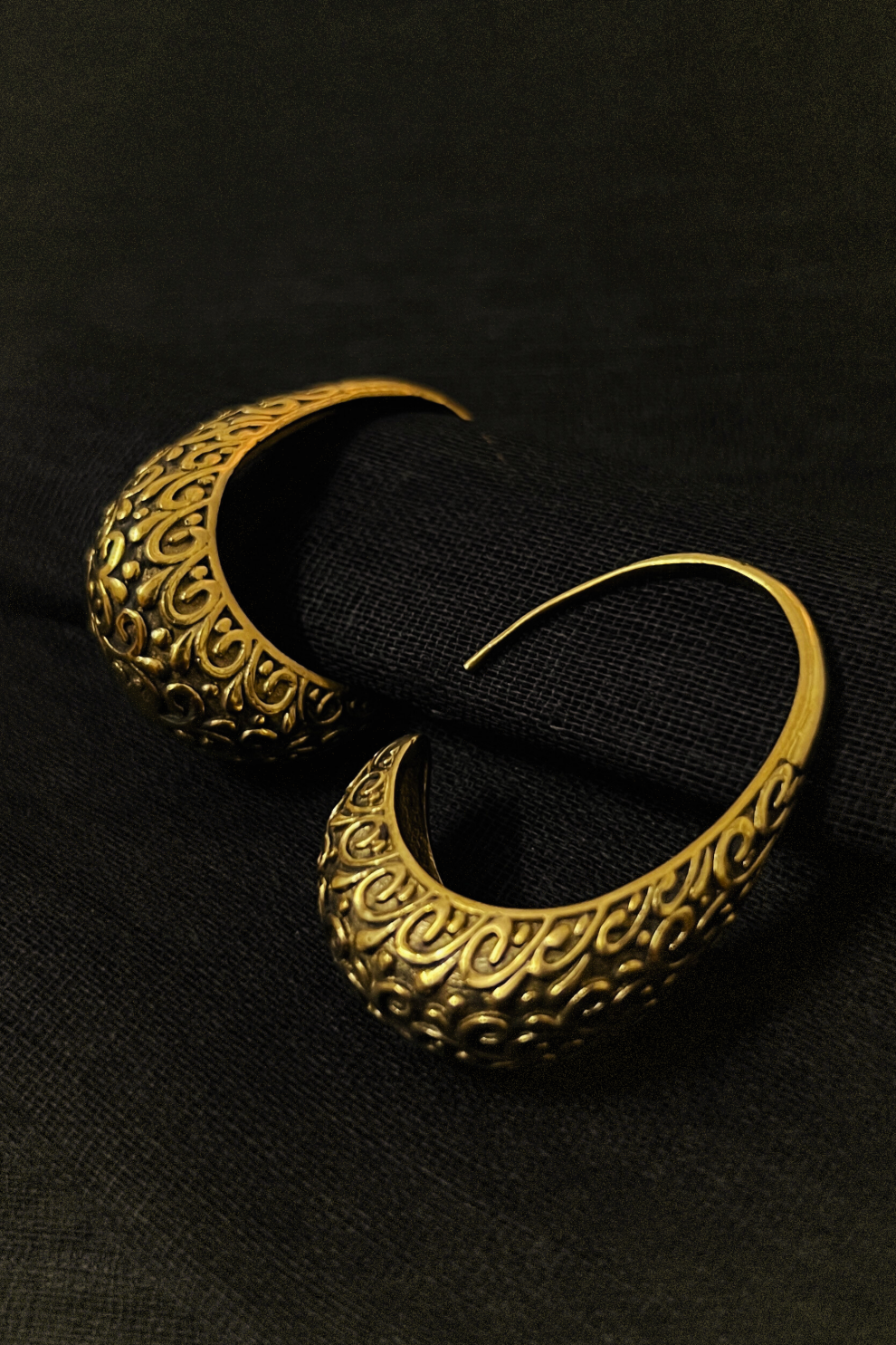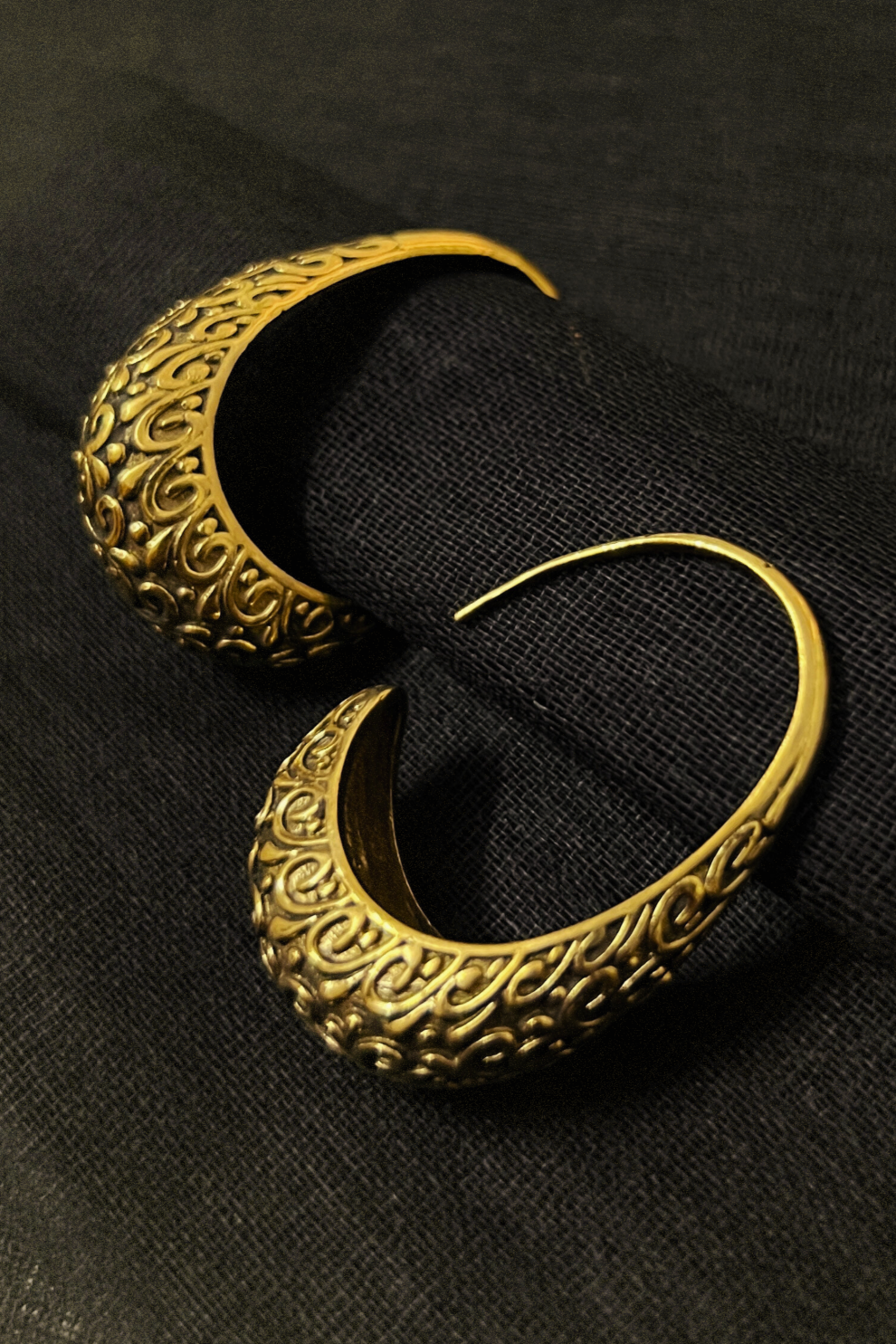 A modern hoop meets an ancient symbol — these earrings feature a fine circular frame crowned with a flying bird motif, hand-embossed with intricate detailing. Crafted from gold-toned brass, they embody lightness, freedom, and elegance in every curve. Perfect for those who love jewelry that speaks with meaning. * Diameter: 4.2 cm * Bird motif length: 1.5 cm * Weight: 5-6 grams
