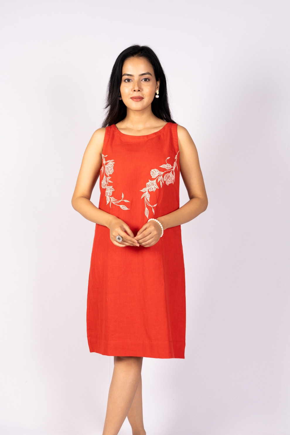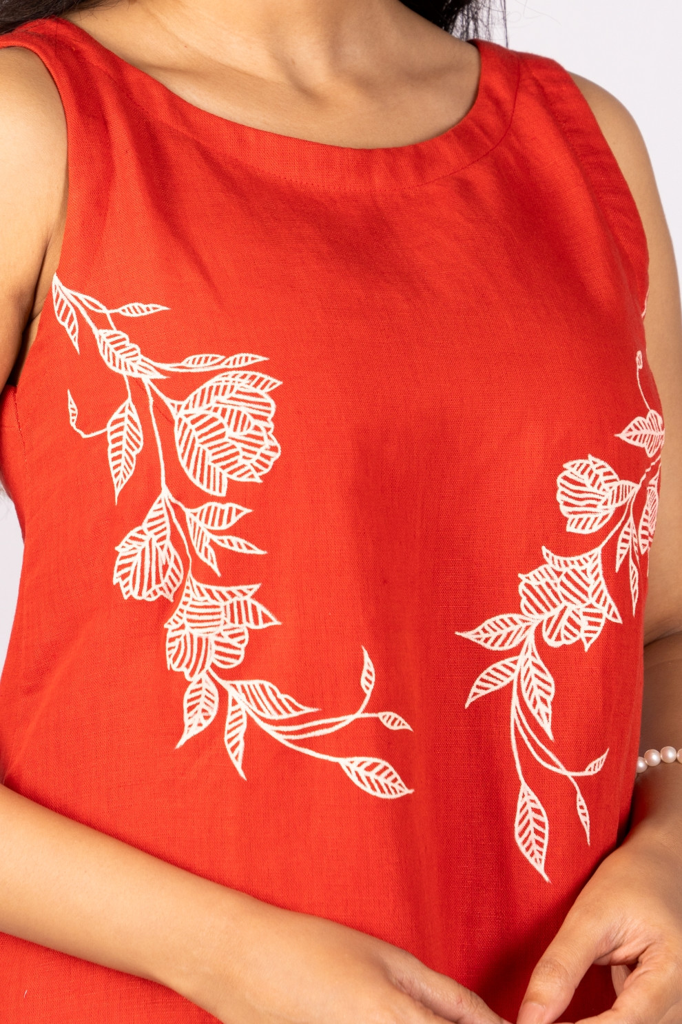 HILIHIF Aarohi Rust Red Kala Cotton Dress celebrates raw texture and mindful design. Breathable woven fabric adds natural depth, while the subtle flare elevates adds to the character. Delicately hand printed vines appreciates the craftsmanship. It is designed to make you feel confident & independent.