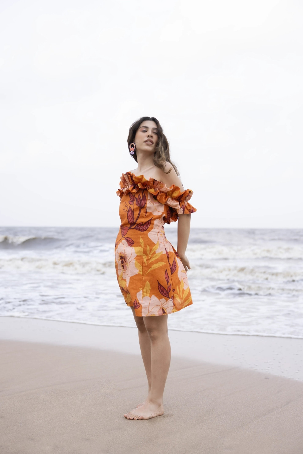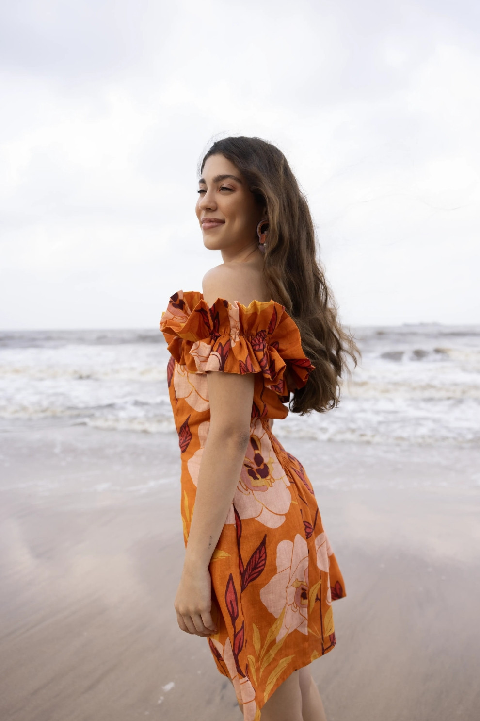 The Aeris dress is your breezy go-to for playful sophistication. Designed with a flattering off-shoulder neckline and layered ruffle detail, it brings a soft, feminine energy to a bold silhouette. The mini length and smocked back offer comfort and shape, while the linen base keeps things light and breathable. Perfect for everything from beach days to evening outings - just add your favourite accessories and you’re set.