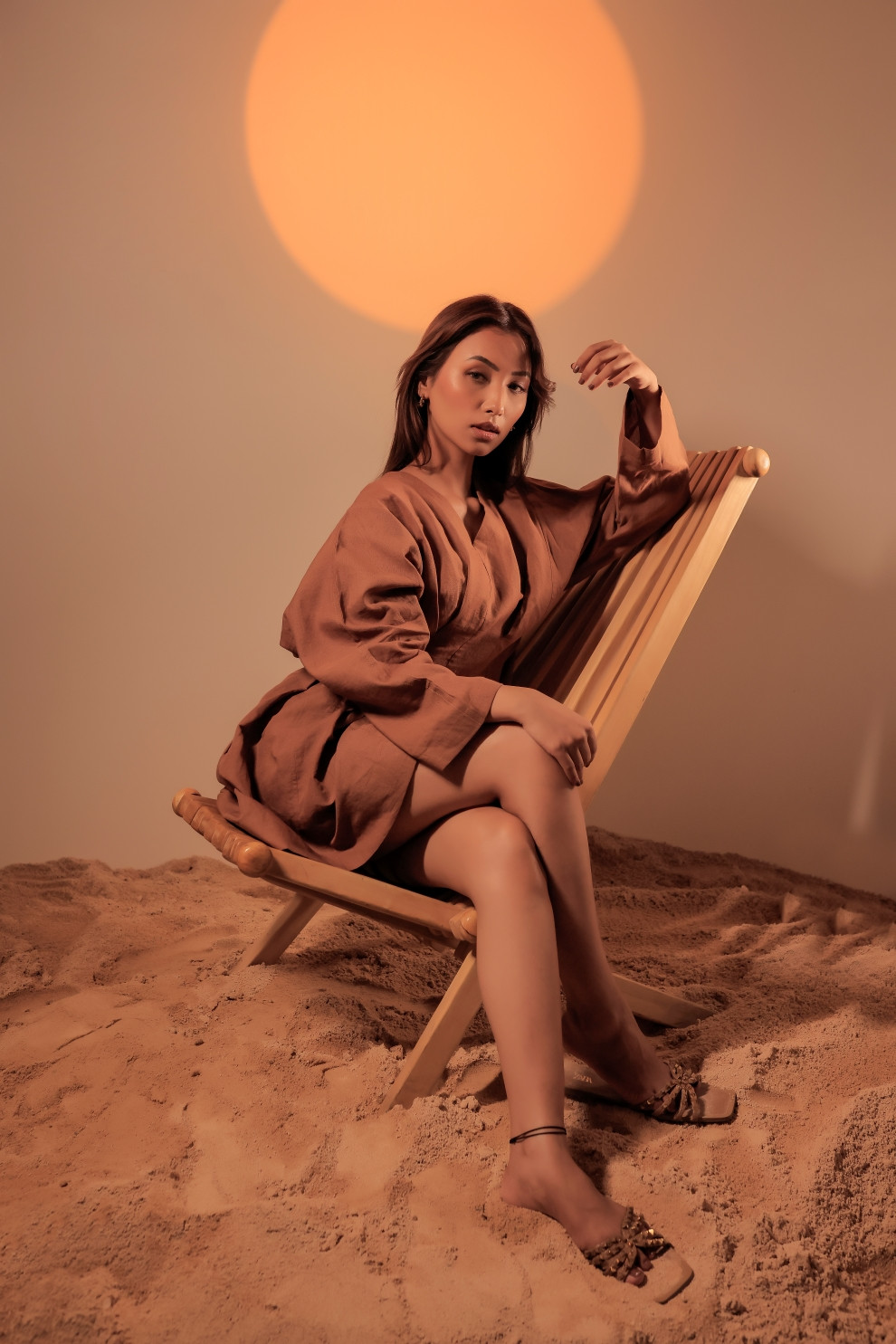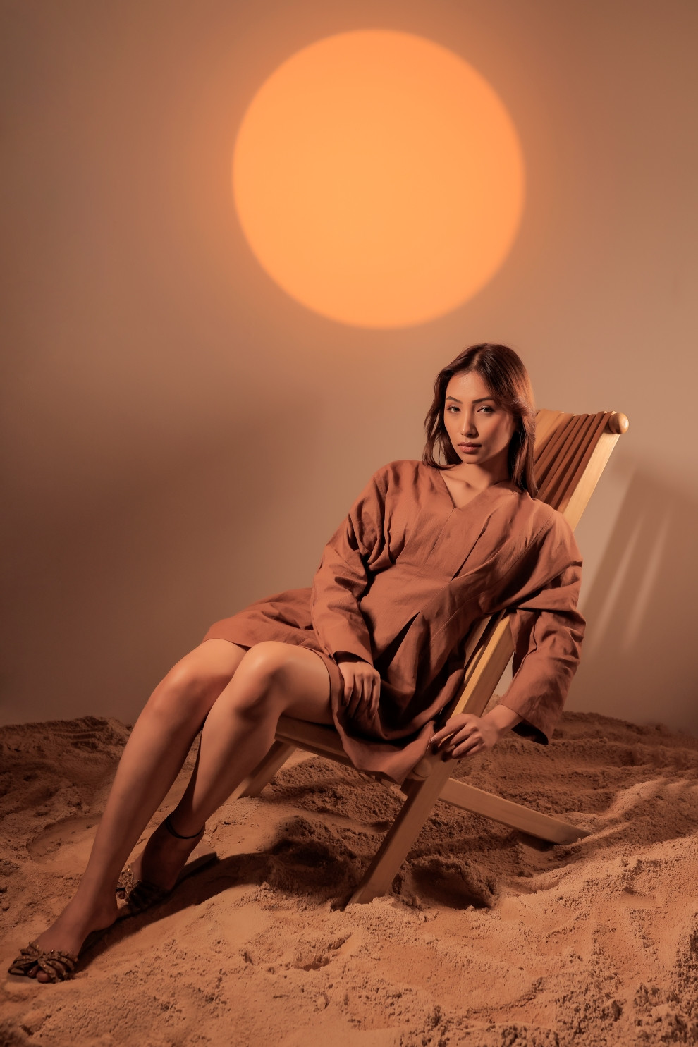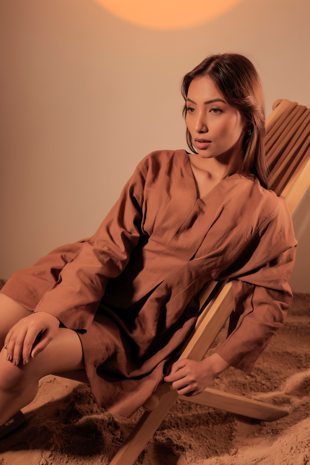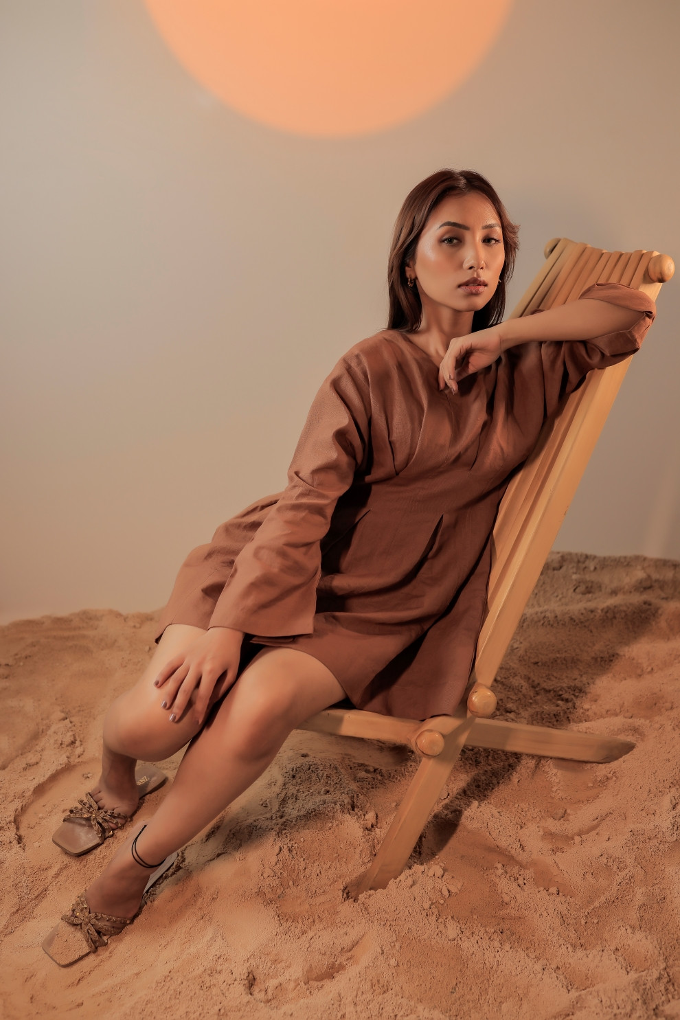 Tea & Dove Box Pleated Linen Mini Dress is a modern essential with timeless charm. Crafted in breathable linen, it brings natural comfort. The box pleating at the waist enhances the curve elegantly, while the full sleeves provide a graceful appeal. The muted tone adds to the minimal aesthetic.
