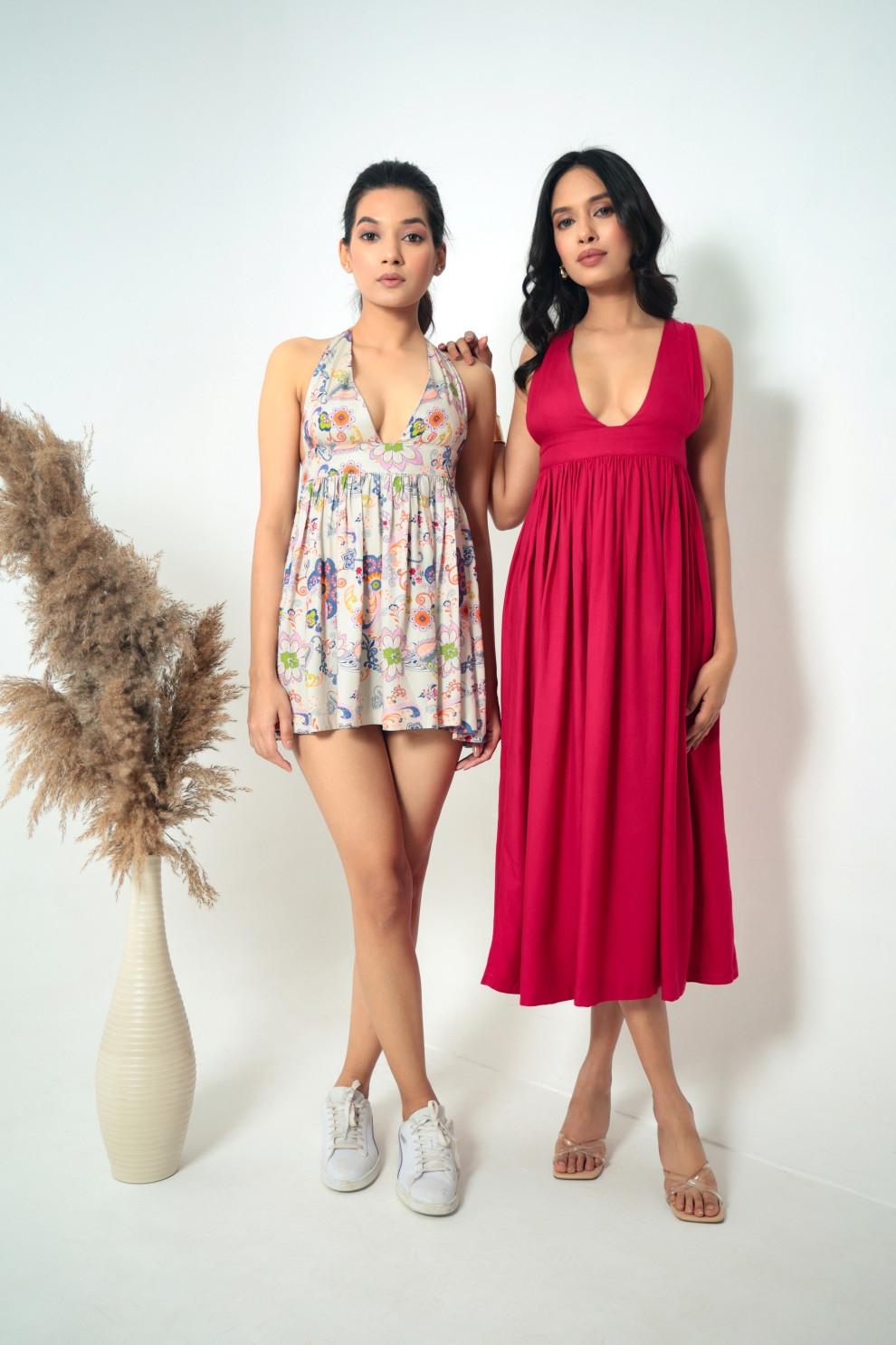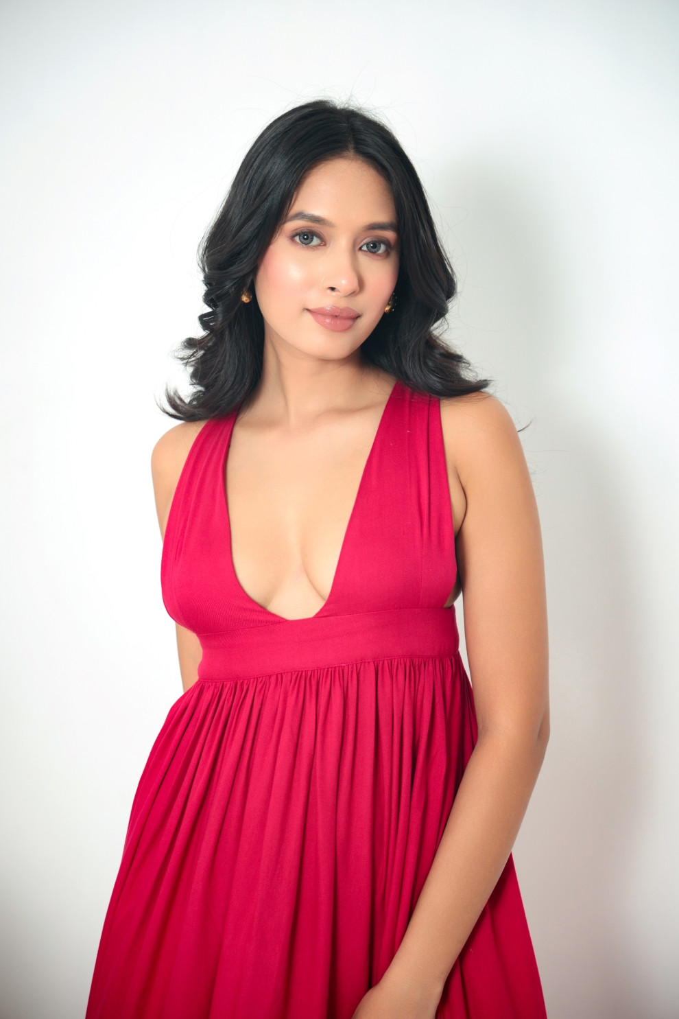 Striking in silhouette, Tea & Dove plunge neck dress is designed to make an entrance. The alluring neckline draws attention to the décolletage, while the cinched waist defines the curves. The dress opens into a structured fit-and-flare skirt with the longevity of twill fabric. The intensifying crimson hue makes an unforgettable statement.