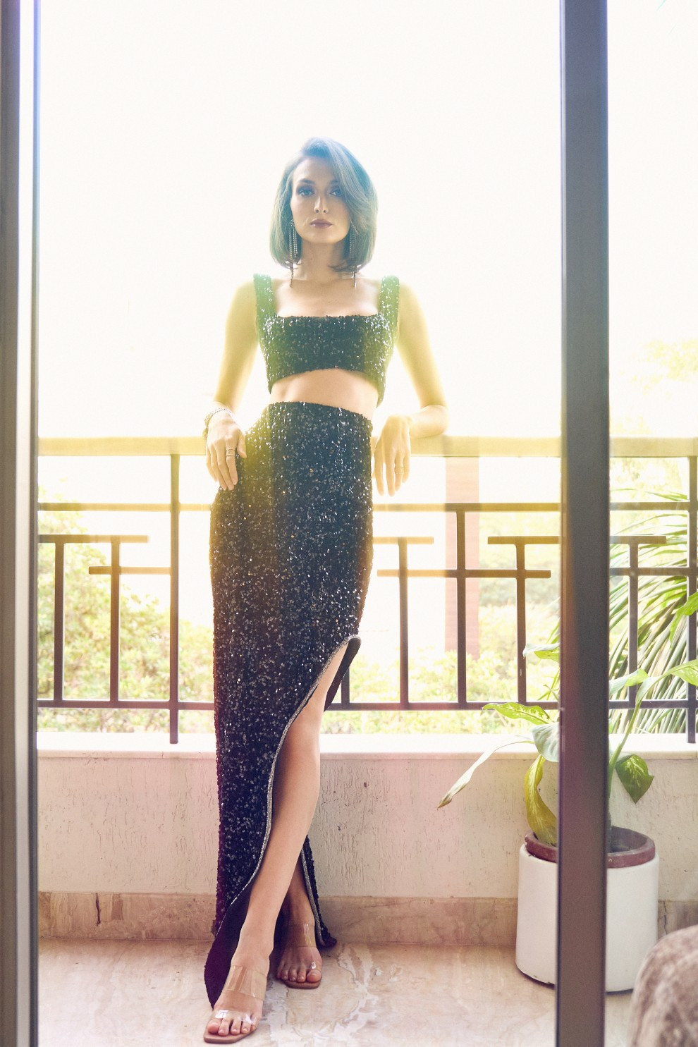 Shimmer meets bold design in this sequined velvet crop top, featuring a striking square neckline and a sleek, fitted silhouette. The structured square neckline and tailored fit create a modern, polished aesthetic, while the concealed zipper ensures a seamless finish. Pair it with the Black Sequins Maxi Skirt for a head-turning outfit.