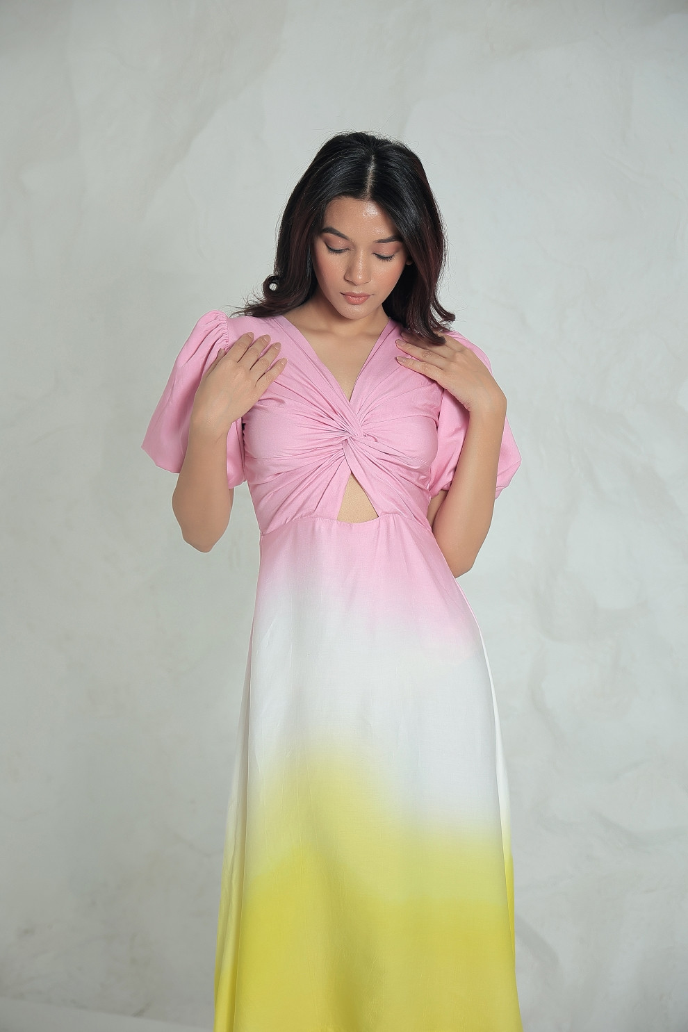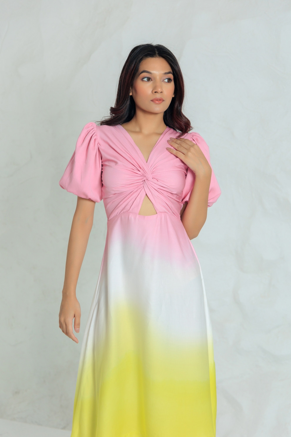 Tea & Dove Pastel Ombre Cut-Out Twist Dress
