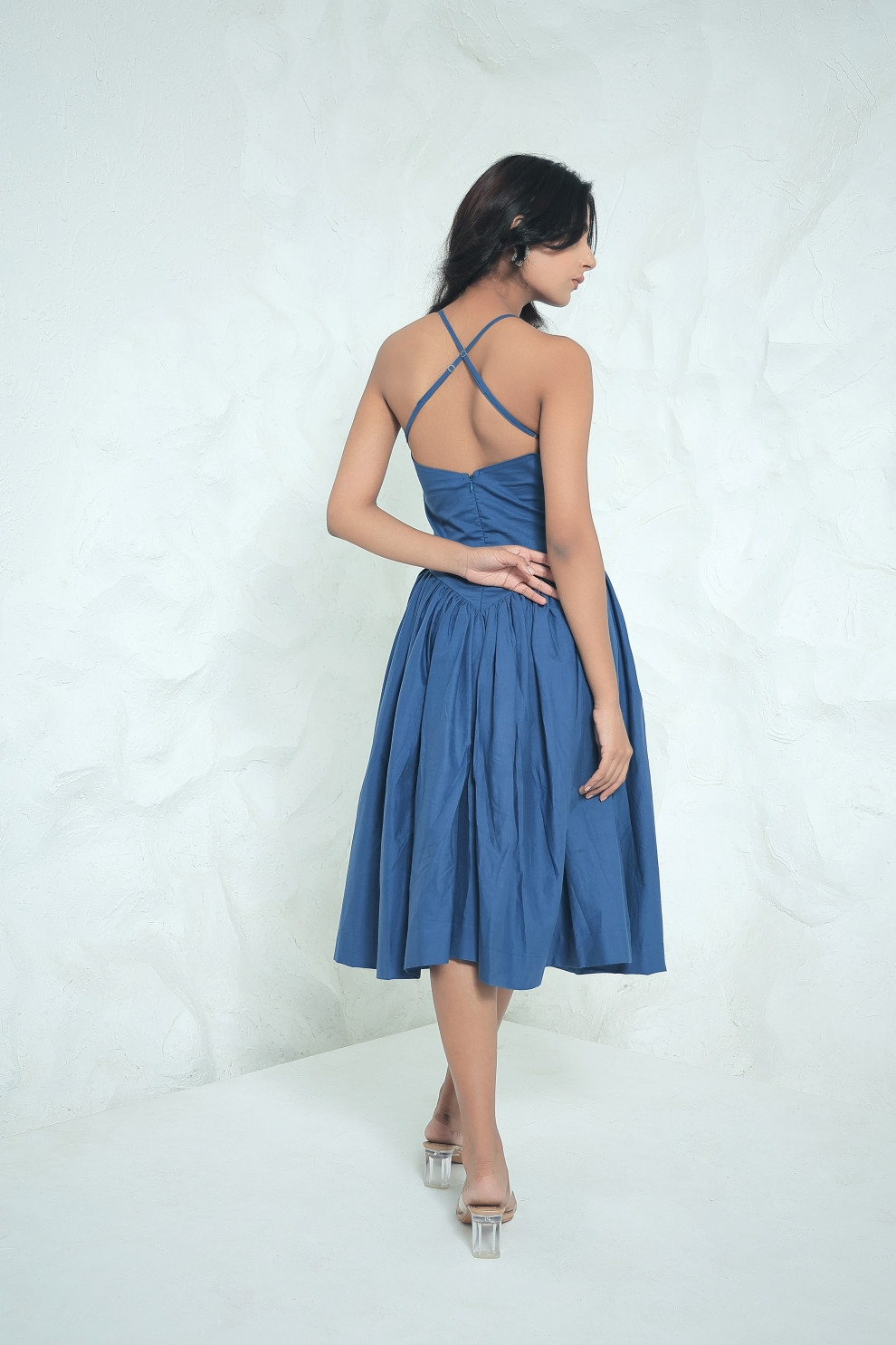 Tea & Dove Corset-Inspired Blue Midi Dress