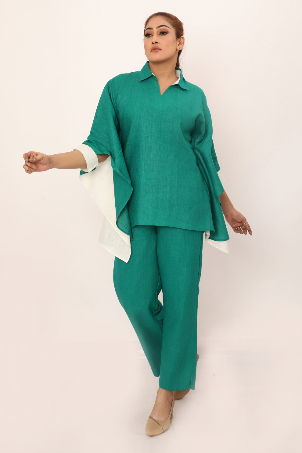 The Sienna set is a statement in refined simplicity, designed for those who appreciate effortless style. The flowing top, with its wide sleeves and relaxed fit, pairs perfectly with the tailored pants to create a look that’s both elegant and versatile. Whether you’re dressing up for an event or keeping it casual, this set’s timeless design will always make an impression. The breathable fabric offers comfort for all-day wear, while subtle detailing elevates the overall aesthetic.