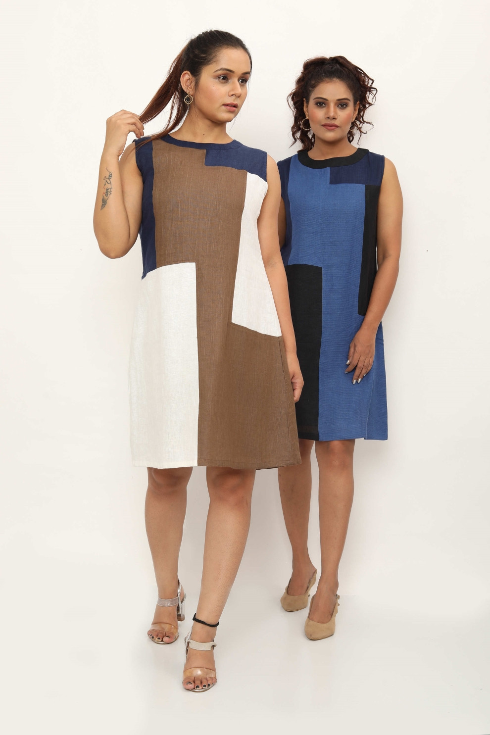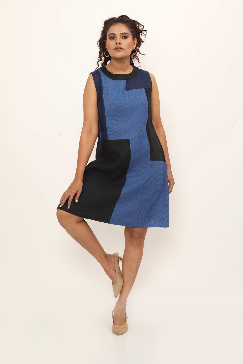Introducing the Topanga Dress – a vision of casual elegance crafted from luxurious linen. This shift dress features eye-catching colour-blocked rectangle joints, adding depth and texture to its design. Elevate your style with this versatile piece, offering both comfort and chic sophistication for any occasion. Layer it with a denim jacket and sneakers for a chic street-style look, or pair it with a tailored blazer and ankle boots for a sophisticated urban look.
